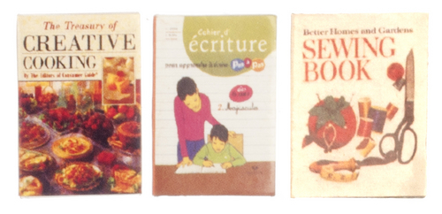 This 3 piece set of women's books for your dollhouse are done in 1:12 scale. Each of the 3 miniature books in the set have pages and measure 0.938"H x 0.625"W x 0.063"D.