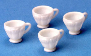 Table Cups. White 4 pieces. This dollhouse miniature is 1:12 scale.