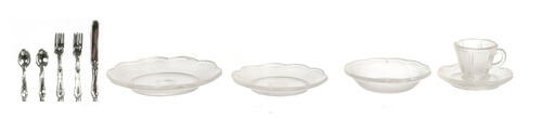 Clear Dishes Full Place Setting 10pc Dollhouse Miniature
