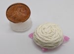 This miniature dollhouse kitchen accessory is a 1:12 scale, bread basket with a napkin inside. The miniature bread basket is a top quality dollhouse miniature from Bright deLights. Size: 0.25" tall by 0.94" in diameter.