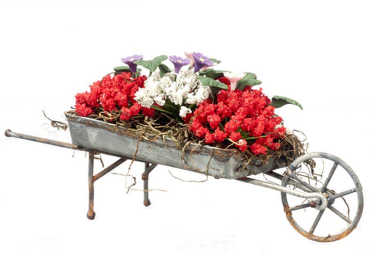 Wheelbarrow w/ Red Flowers Dollhouse Miniature