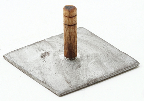 This dollhouse miniature mason's hawk is 1:12 scale. This hawk is silver with a wooden handle.