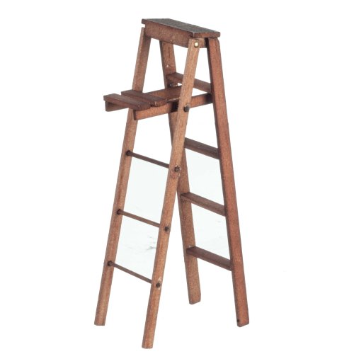 This walnut-finished wooden miniature 5-foot ladder is a wonderful and functional accessory for your 1:12 scale dollhouse. Here's a breakdown of the details: