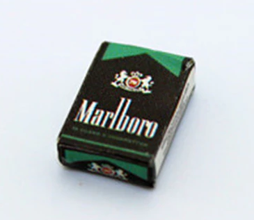 This miniature classic green menthol tobacco cigarette box is a 1:12 scale dollhouse reproduction accessory. They are empty, there is NO tobacco. Size: 0.48" long by 0.32" wide by 0.11" deep.
