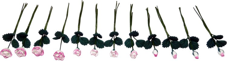 This beautifully crafted dollhouse miniature Dozen Pink/ White Roses is 1:12 scale. There are 12 roses and are pink/ white colored. Just think of how amazing these roses would look in a boquet arrangement on your dollhouse dining room table!