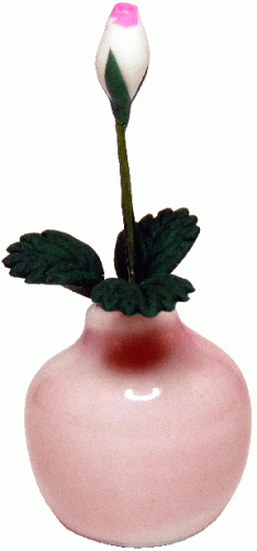 Pink & White Rose Bud in Pink Ceramic Vase Dollhouse Miniature