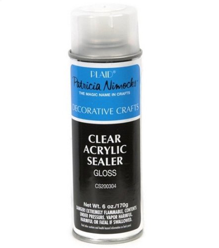 Plaid Patricia Nimocks Clear Acrylic Sealer is an aerosol coating that seals prints. Use Plaid Patricia Nimocks Clear Acrylic Sealer over paint lacquer, varnish and waterbase paint. May be used as a sealer on bisque and stain-finished ceramics, perserve maps, documents. One can Plaid Patricia Nimocks Clear Acrylic Sealer 6 ounces.