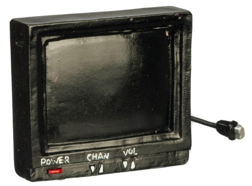 This miniature solid, painted resin television is a 1:12 scale non-working dollhouse accessory.