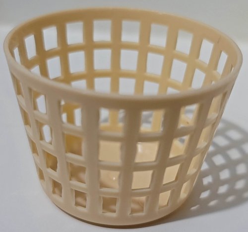 This plastic round miniature tan laundry basket is a 1:12 scale dollhouse accessory. Size: 1.23" tall by 1.76" in diameter.