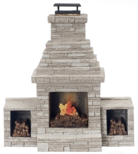 Large Outdoor Fireplace. This miniature large outdoor fireplace is 1/12'' scale and will make a fine addition to your dollhouse. This outdoor fireplace is 7-3/4''W x 8-1/2''H x 3''D.