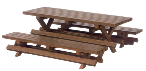 Picnic Table & 2 Benches - Walnut Dollhouse Miniature