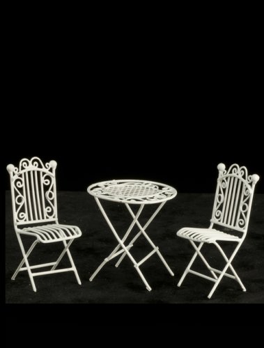 Your dollhouse patio or lanai is going to look great with this miniature chairs & table(2.5"H x 3" in diameter) set. The miniature table and 2 chairs in style one are 1:12 scale dollhouse miniatures.