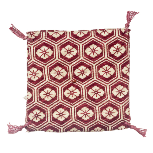 This miniature red floral cat's pillow is the right size for your 1:12 scale dollhouse's miniature cats to sleep on. This miniature dollhouse kitty pillow is a 1:12 scale miniature feline sleeping pillow with a "red, floral" design and tassels. Size: 2"H x 2"W x 0.125"D