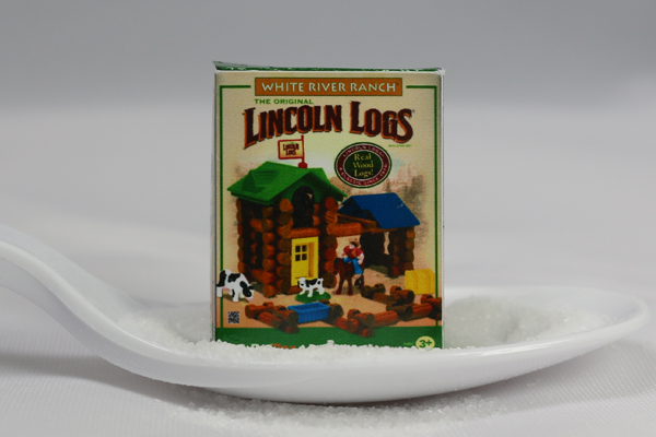 This American made dollhouse miniature is a 1:12 scale lincoln logs box. The miniature lincoln logs box measures 0.84" wide by 1.08" deep by 0.35" tall and will make a great addition to a child's play room for your dollhouse children.