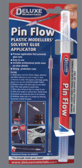 This miniature dollhouse building accessory is a Pin Flow Applicator Modellers Glue by Deluxe. The Pin Flow Applicator Modellers Glue set includes1 tube glue appliactor with cap.