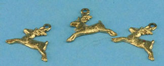 Reindeer Ornaments, Gold, 3 Pieces. This set of 3 gold Reindeer Ornaments are perfect for adding a festive touch to your dollhouse tree. The Reindeer Ornaments are 1:12 scale.