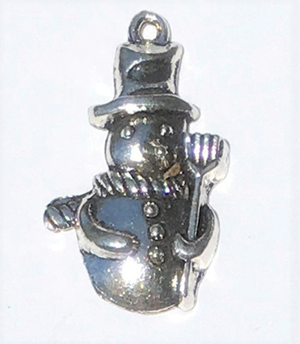 This beautifully crafted dollhouse miniature Round Snowman Ornament is 1:12 scale. This ornament is silver and is shaped as a round snowman with hat a scarf. The ornament measures 1" long, including loop.