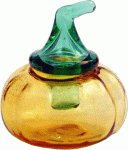This perfect little glass dollhouse pumpkin jar is in one inch 1:12 scale miniature dollhouse accessory by Bright deLights USA. Size: 0.87" tall with removable lid on by 0.69" in diameter.