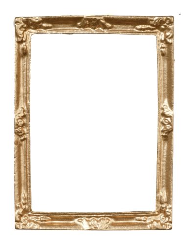 This dollhouse miniature gold resin picture frame is 1:12 scale. Size: 2” x 1-3/4”.