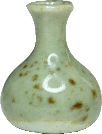 This interesting green and brown ceramic vase is in 1 inch(1:12) miniature scale. Its design would compliment your dollhouse kitchen, living room, or even a bath room.