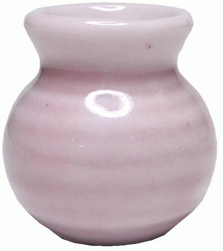 This miniature dollhouse decorating accessory is a Ceramic Pink Vase. The dollhouse Ceramic Pink Vase by Bright deLights is real ceramic and done in 1:12 scale.