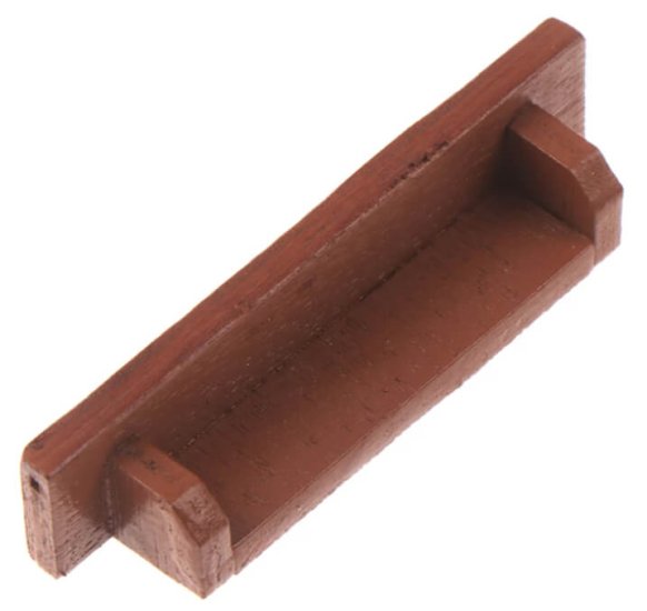 This miniature wooden brown painted wall shelf is a 1:12 scale dollhouse decorating accessory. Size: 0.52" H x 2.40" W by 0.5" D.
