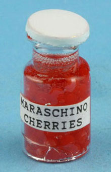 Maraschino Cherries. This miniature jar of Maraschino Cherries is perfect for stocking your dollhouse fridge. The 1:12 scale jar is fun to display during a dollhouse ice cream party.