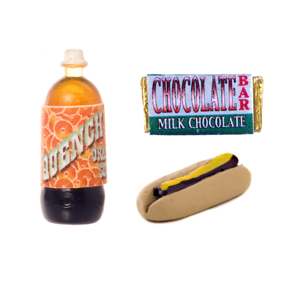 This miniature resin picnic set is a 1:12 scale dollhouse food item set. Size: 1 inches tall by 0.375 inches wide by 0.375 inches deep.