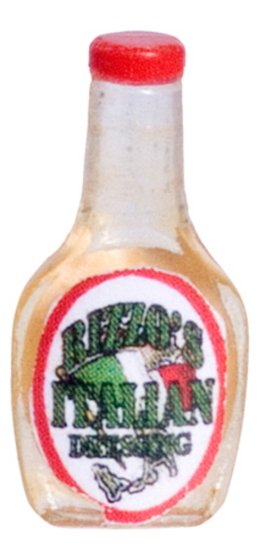 This miniature dollhouse accessory resin italian salad dressing bottle is perfect for topping your dollhouse salad done in 1:12 scale. Size: 0.75"H x 0.375"W x 0.125"D.