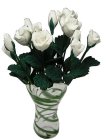(image for) White Roses in Green Striped Ruffle Vase 12pc