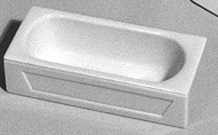 This modern era miniature dollhouse bathtub includes the front panel and is done in 1:12 scale. The miniature bathtub is vacuum formed white co-polyester plastic. Size: 5-3/8" L x 2-3/8" W x 1-1/2" D.