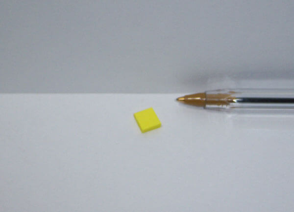 This miniature dollhouse accessory is a pad of yellow post it stick notes (real) in 1:12 scale. The miniature pad of yellow sticky notes measures 0.05" tall by 0.3" by 0.27".