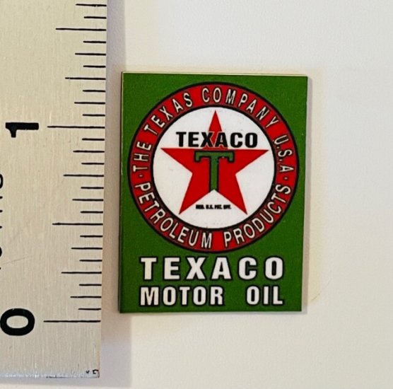 This miniature faux vintage gas & oil station sign printed in fine detail on midweight cardstock is a 1:12 scale dollhouse accessory. Size: 1.28" tall by 0.99" wide.