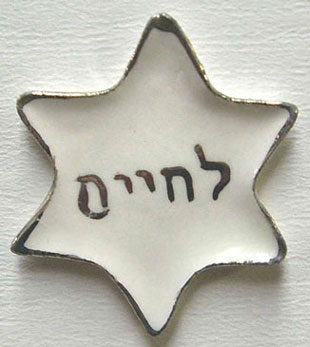 This miniature star plate L'Chiem is a quality 1:12 scale miniature. The miniature dollhouse sized plate measures 1-1/4"H x 1-5/16"W. It will look great displayed in your dollhouse.